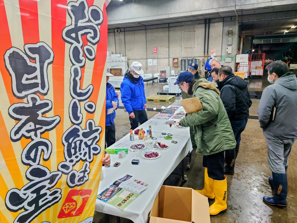 市場内関係者のたくさんの皆様に試食していただきました‼️🐳