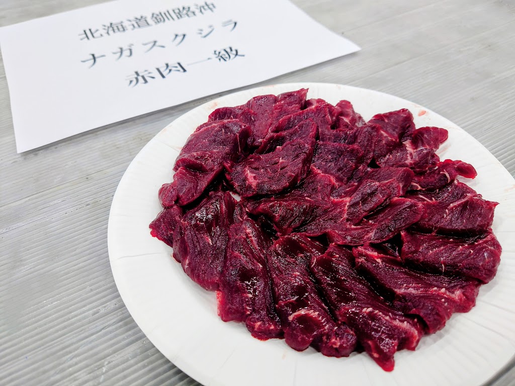 本日世界で唯一母船式捕鯨を行う共同船舶株式会社の協賛で、釧路沖冷凍ナガスクジラ(赤肉)の試食会を実施致しました!!